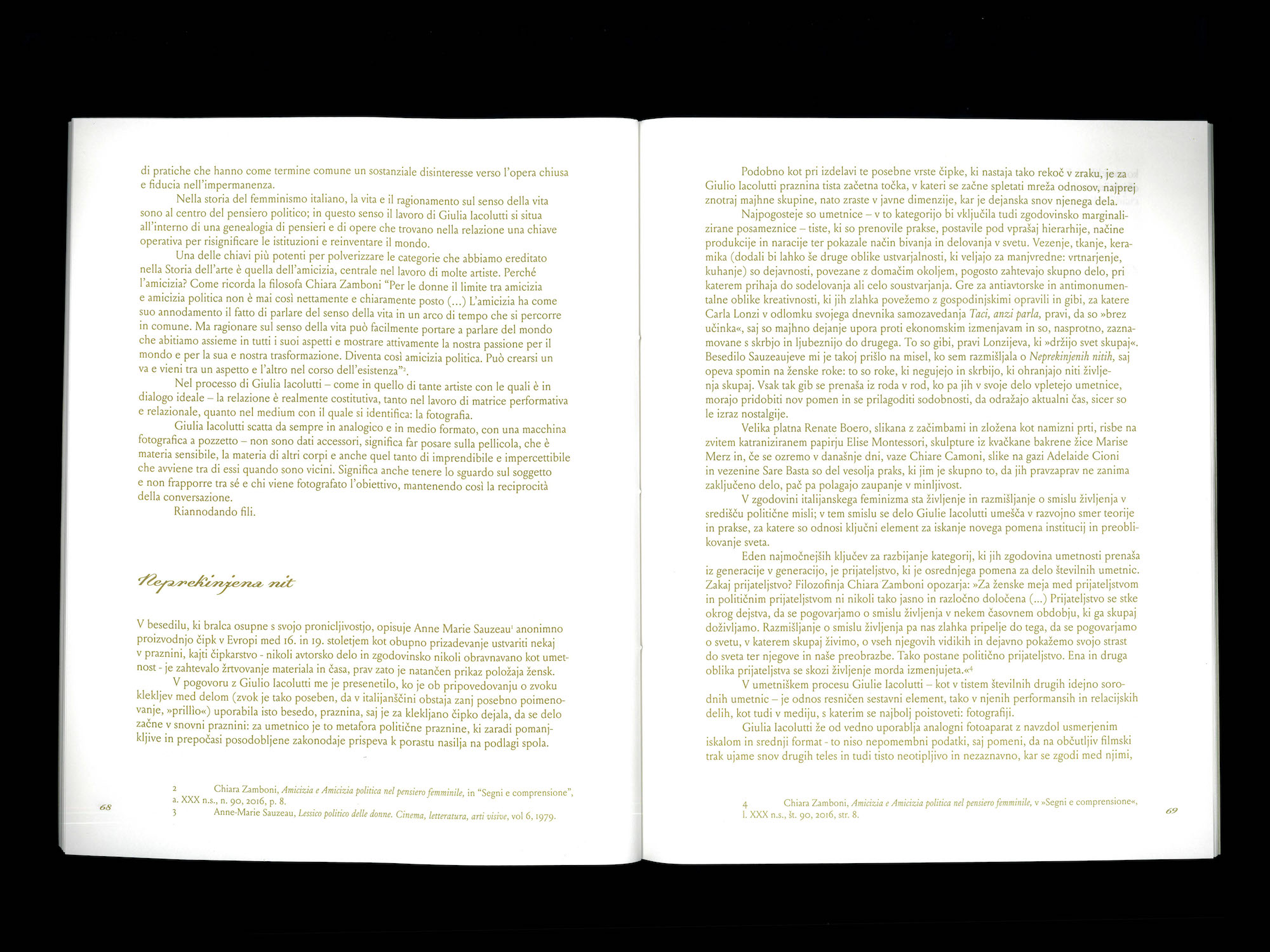 Il volume ripercorre le diverse fasi del progetto attraverso una sequenza fotografica, trovando nella trasparenza della carta un elemento formale che restituisce la continuità tra saperi, corpi e vissuti. Alle immagini si affiancano testi critici delle curatrici Rachele D’Osualdo e Cecilia Canziani, della psicoterapeuta Lucia Beltramini e dell’architetto Antônio Frederico Lasalvia, che inquadrano il lavoro in una prospettiva contemporanea e nel contesto europeo.