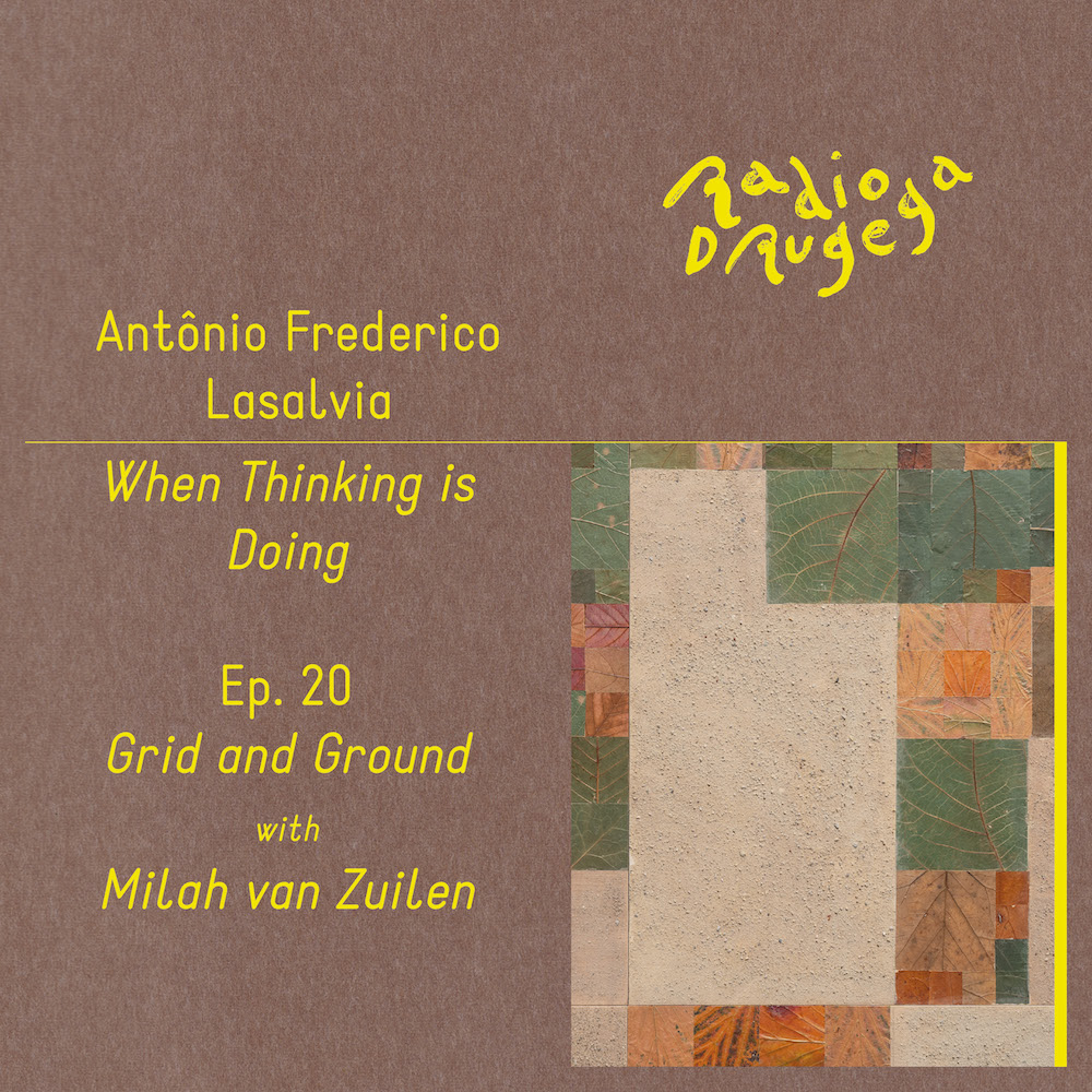 In the 20th episode of When Thinking is Doing, Antônio Frederico Lasalvia is joined by Milah van Zuilen in order to discuss her practice between forest ecology and art. Our conversation touches on the materiality of contemporary and primordial forms, the intersection between the methodologies of art and science, the use of the grid to make sense of nature, the role of artistic residencies in promoting social relations and her experience as a host in Jaro, in the Czech Republic.