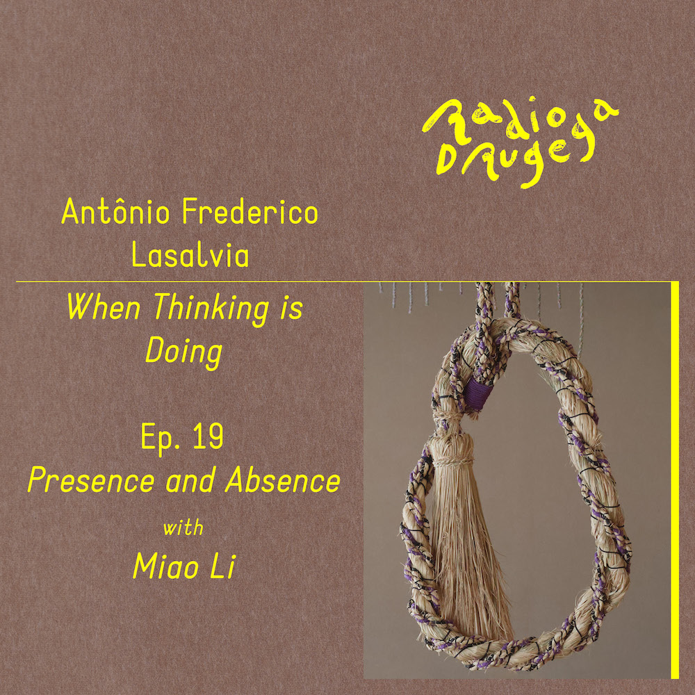 In the nineteenth episode of When Thinking is Doing, Antonio Frederico Lasalvia is joined by Miao Li in order to think about ways of attending to matter. As we accompany Miao’s workshop practice, our conversation touches on experiences with fiber art and ceramics that employ both traditional and experimental techniques. Guided by animist philosophies and Buddhist meditation, Miao’s understanding of beauty offers a quiet, but radical reimagining of contemporary aesthetics, rooted in attention and intuition for the slow unfolding of form.