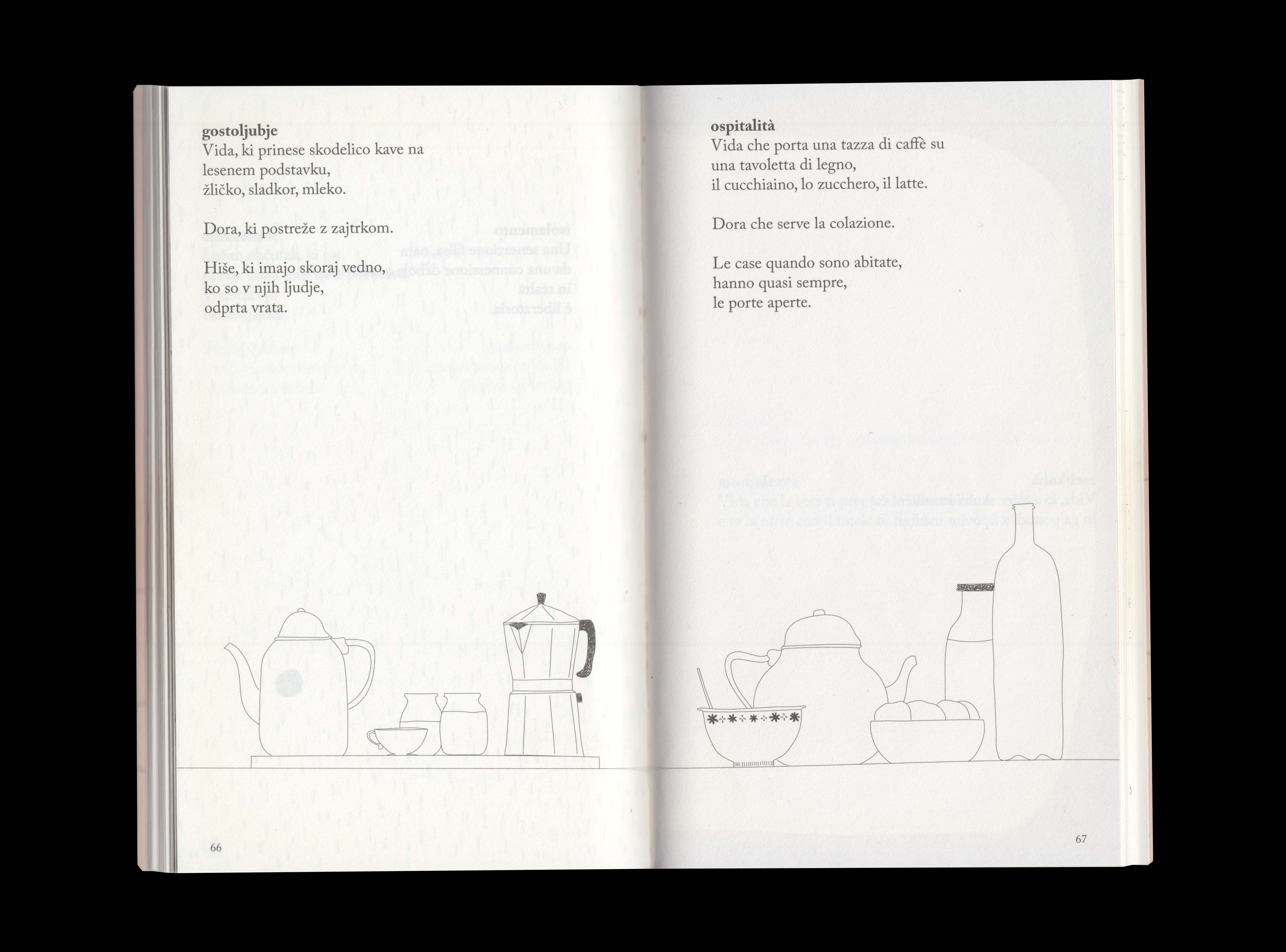 La raccolta di poesie parla di un luogo specifico a più livelli. Non solo attraverso l’esperienza interiorizzata e le parole della giovane poeta, ma anche tramite il coinvolgimento di tutti i collaboratori che, con le proprie idee, la progettazione e le traduzioni hanno contribuito al prodotto finale. Questo luogo ha infatti lasciato un segno diverso in ognuno di noi e, nonostante l’incertezza che lo caratterizza, rimane fonte di poesia nei nostri processi creativi.” - Janja Šušnjar