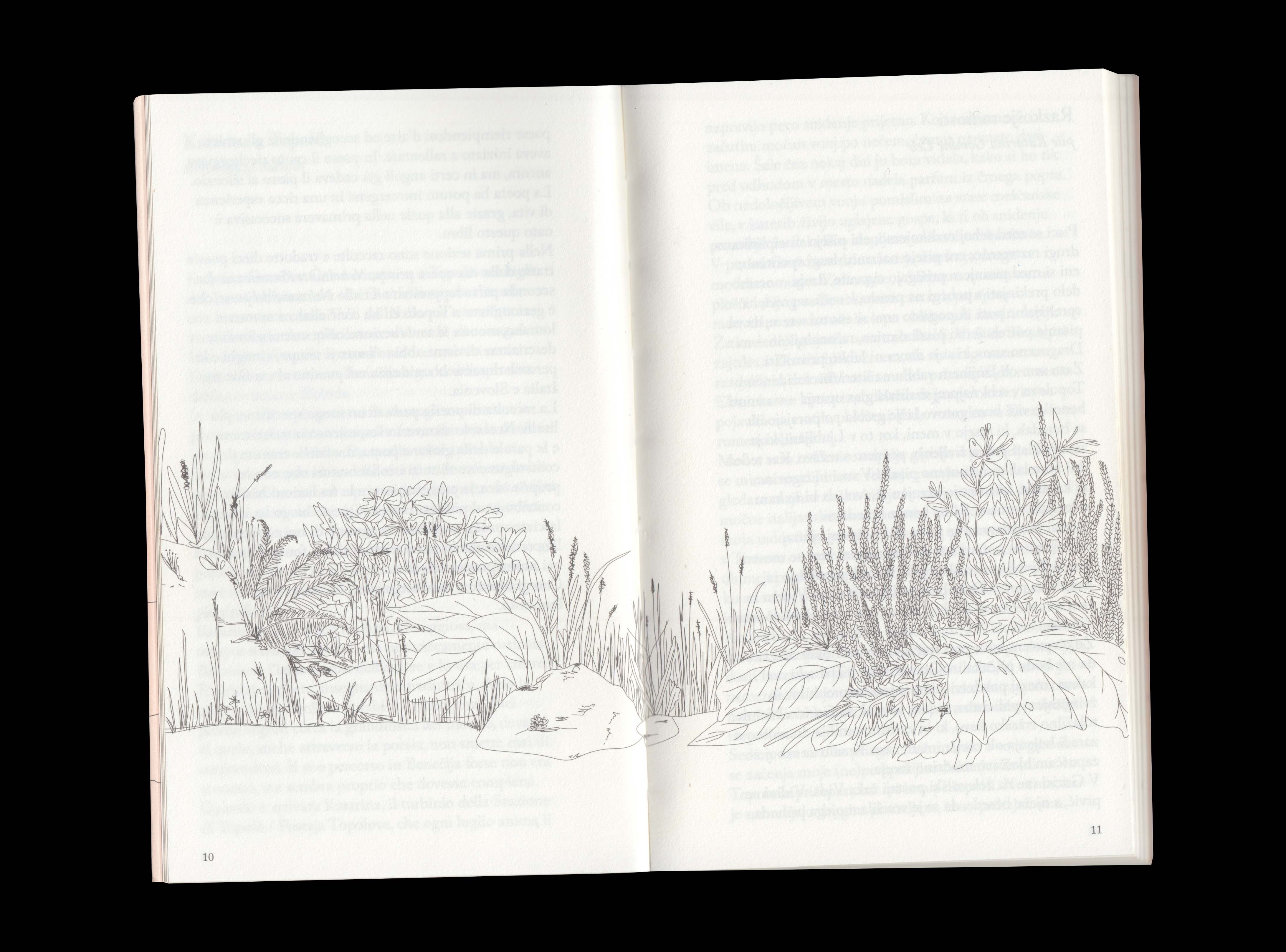 “Katarina Gomboc Čeh è comparsa a Topolò nel luglio del duemiladiciannove alla ne della strada che sale con le sue curve dalle Valli del Natisone e termina in un nido di pietra sopra il mare di boschi di castagni. Ha accolto a braccia aperte l’invito a venire a cercare l’ispirazione creativa in Benečija e godersi l’ospitalità dell’associazione Robida.” dal testo introduttivo di Janja Šušnjar