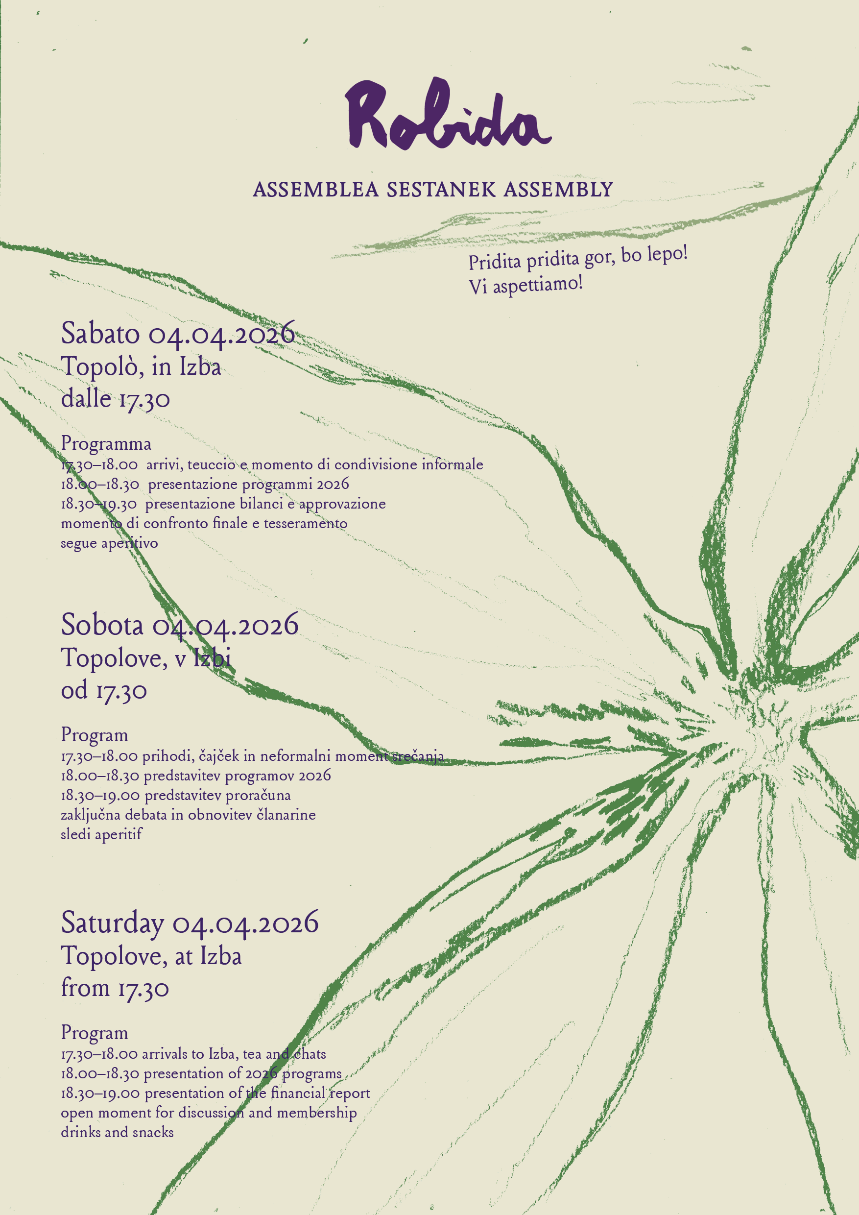 If you are a member of Robida's association, join us in real life in Izba or online for our annual association's assembly! You probably received an email about this. If you are a member and you haven't received it let us know and we are happy to share all the info → robidamagazine@gmail.com