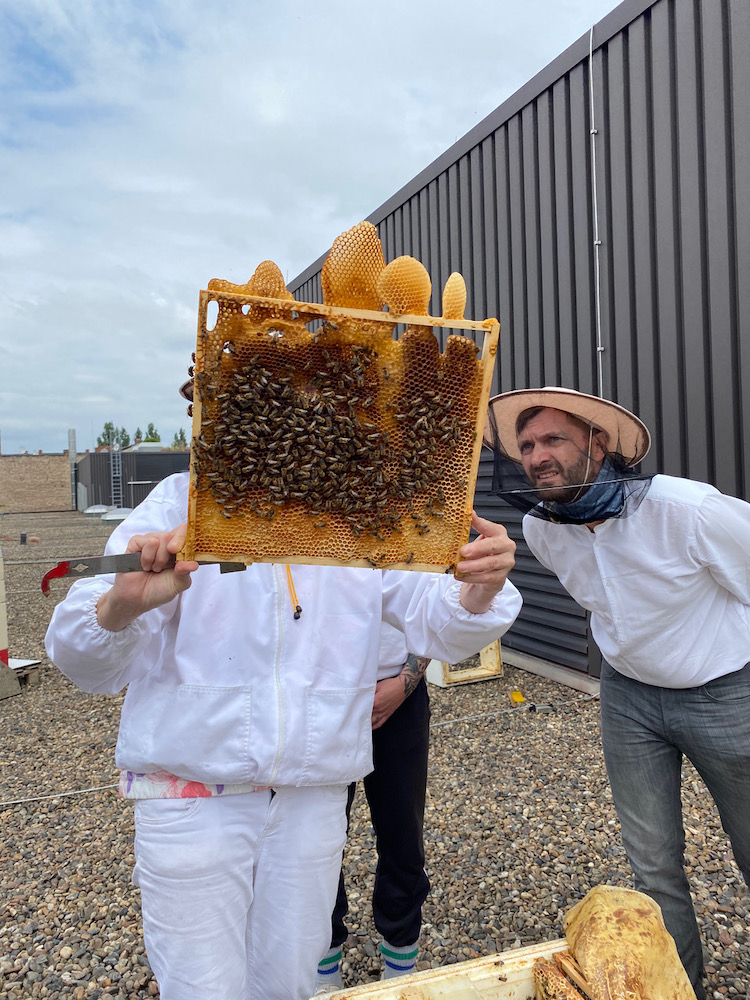 Erika Mayr (1973) has been trained as a landscape gardener and horticulturist. While developing a project for Detroit in 2004, she discovered various aspects of urban beekeeping. Back in Berlin, Erika started her own beekeeping enterprise on rooftops and became a key figure in the upcoming beekeeping scene of the city. Over time she developed a specific taste and knowledge about honey and a way to share with people. As a co-founder of Stadthonigfest (2011-2018) she organised a yearly honey market at Prinzessinnengarten, at its first location in Berlin-Kreuzberg. As curator of the Honey Lab 2016 (Stadtlandfood Festival Markthalle Neun, Berlin) she collaboratively created a tasting bar with honey samples collected within the city limits and labelled with personal information about each beekeeper. During summer-schools organised by Animalesque-Berlin (2018,2019) the „bees+trees“ bicycle-tour through Berlin and the honey-tasting afterwards gave insights for the students of how everything around us is linked and connected. Erika was director of the Charlottenburg Beekeepers Association from 2008 to 2019. In 2020 she relocated to Rome, where she is transforming the green areas at the German Academy Villa Massimo towards a more bee-friendly and sustainable garden. She also installed her apiary of 6 bee-families.