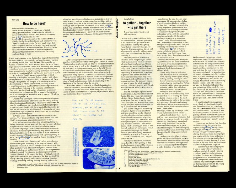 The publication Care of Margins, titled after the symposium organised by Robida, contains some of the reflections shared during few days in September 2021.