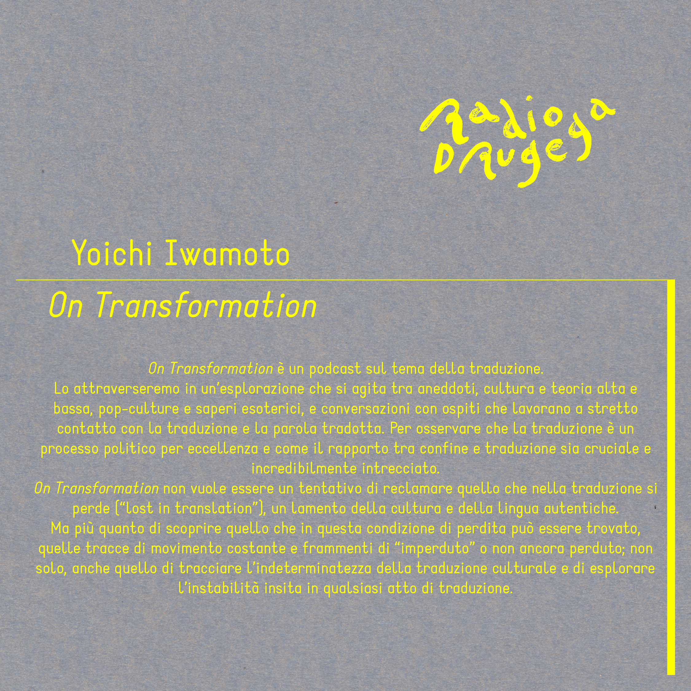 On Transformation non vuole essere un tentativo di reclamare quello che nella traduzione si perde (“lost in translation”), un lamento della cultura e della lingua autentiche. Ma più quanto di scoprire quello che in questa condizione di perdita può essere trovato, quelle tracce di movimento costante e frammenti di “imperduto” o non ancora perduto; non solo, anche quello di tracciare l'indeterminatezza della traduzione culturale e di esplorare l'instabilità insita in qualsiasi atto di traduzione.