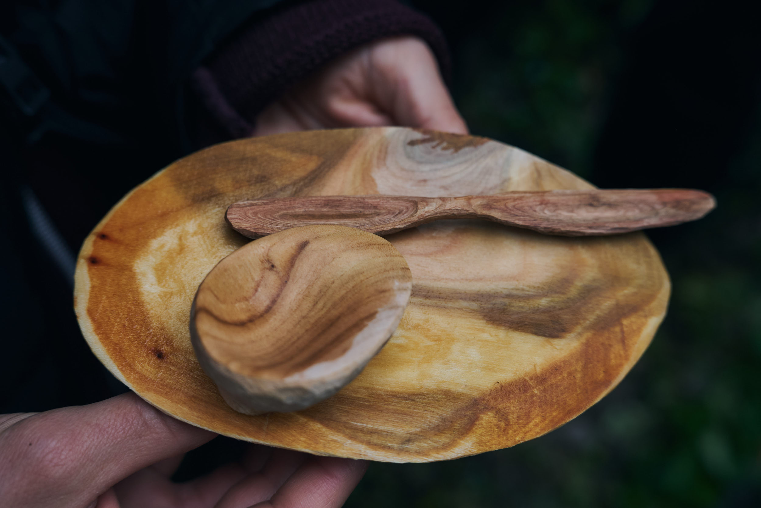 By using the tree to taste the recipes inspired by it, its afterlife is not only a rhetorical allusion, but also a material presence to be physically felt. And so we decided to carve different vessels – spoons, bowls and other utensils – in order to better incorporate what was once a fallen cloud.