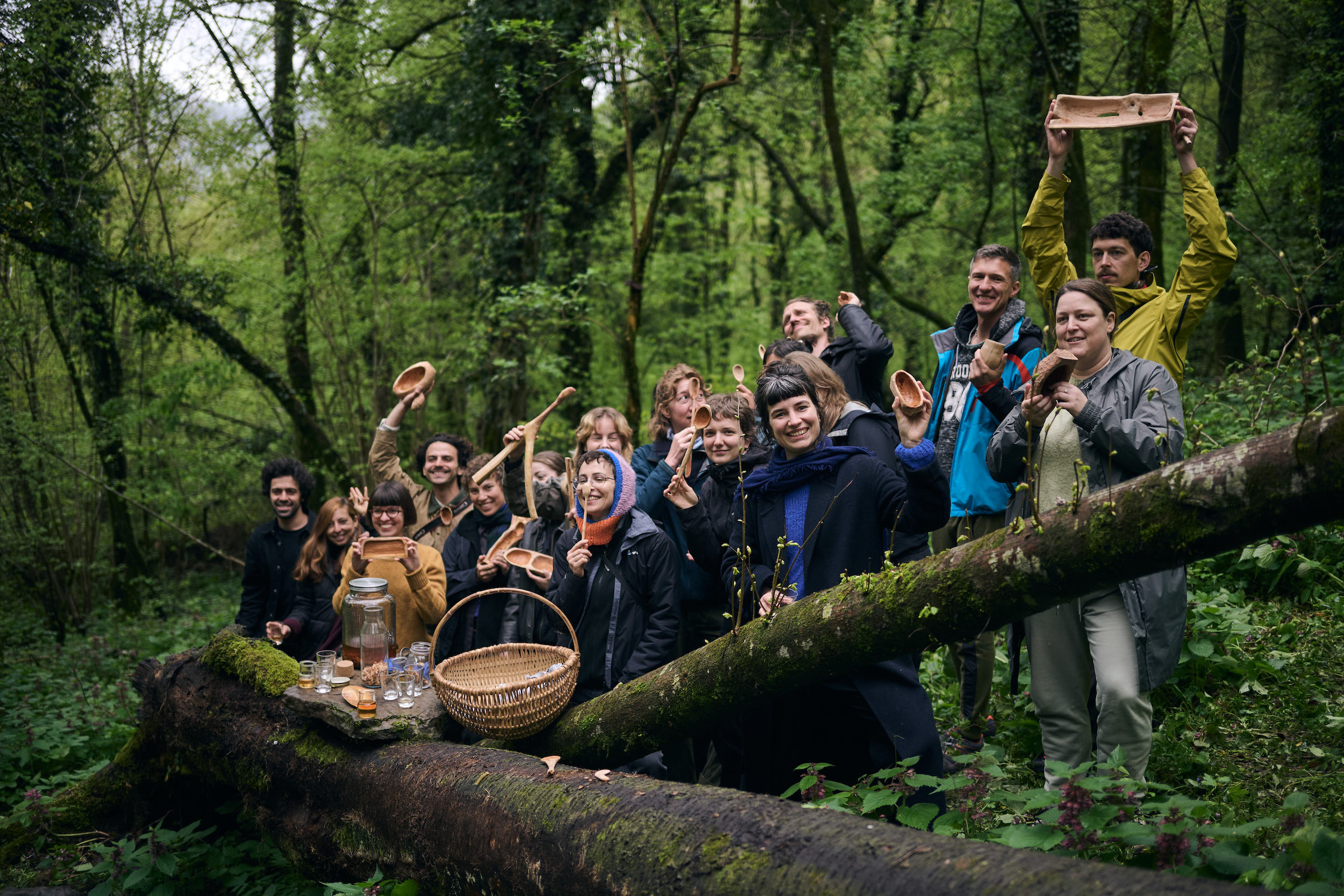 By the end of it, the experience of working with this tree was complemented by yet another sense, as we got a taste of the wood itself. Phillip and Suzanne prepared a tea made from roasted cherry-wood chips, freshly gathered at the participant’s workbenches during the workshop. This beverage was served in the forest, by the fallen cherry, in vessels made from the wood collected there.