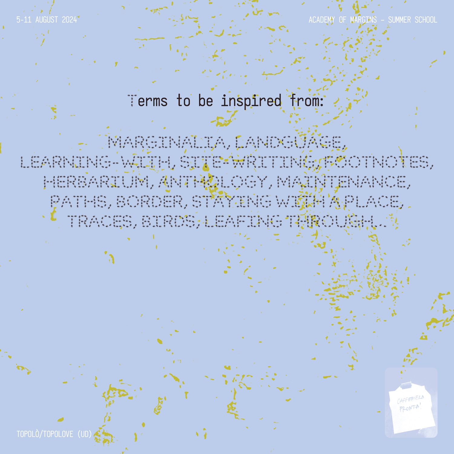 For this reason, we have decided to involve you even more intimately in our research work and to explore with you the theme of situated publishing and collective learning during the upcoming August Summer School. We invite you to reflect with us on the future of our editorial work, to explore its infinite possibilities for development, to venture together into and with the place, to receive inspiration and suggestions.