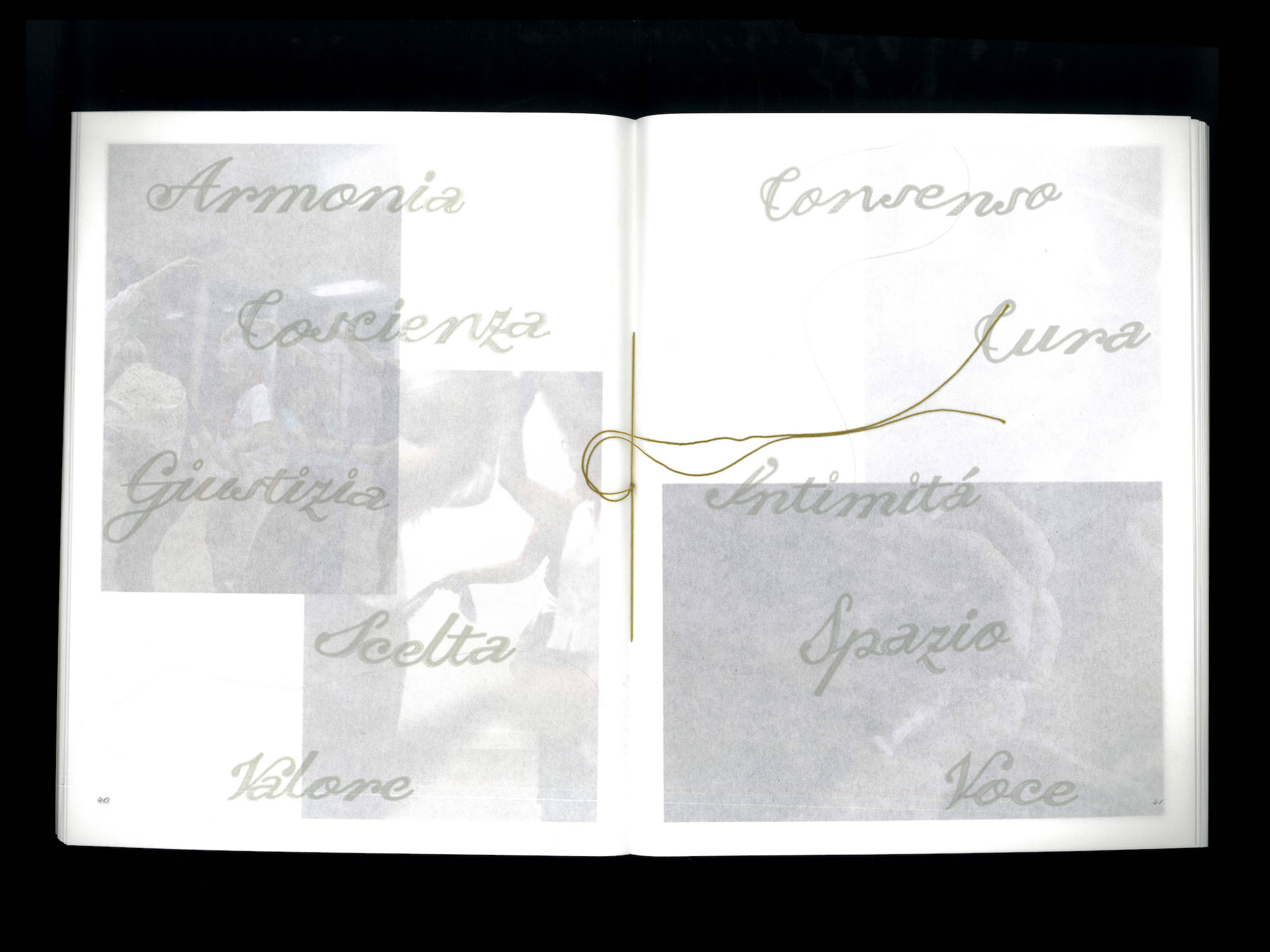 Il volume ripercorre le diverse fasi del progetto attraverso una sequenza fotografica, trovando nella trasparenza della carta un elemento formale che restituisce la continuità tra saperi, corpi e vissuti. Alle immagini si affiancano testi critici delle curatrici Rachele D’Osualdo e Cecilia Canziani, della psicoterapeuta Lucia Beltramini e dell’architetto Antônio Frederico Lasalvia, che inquadrano il lavoro in una prospettiva contemporanea e nel contesto europeo.