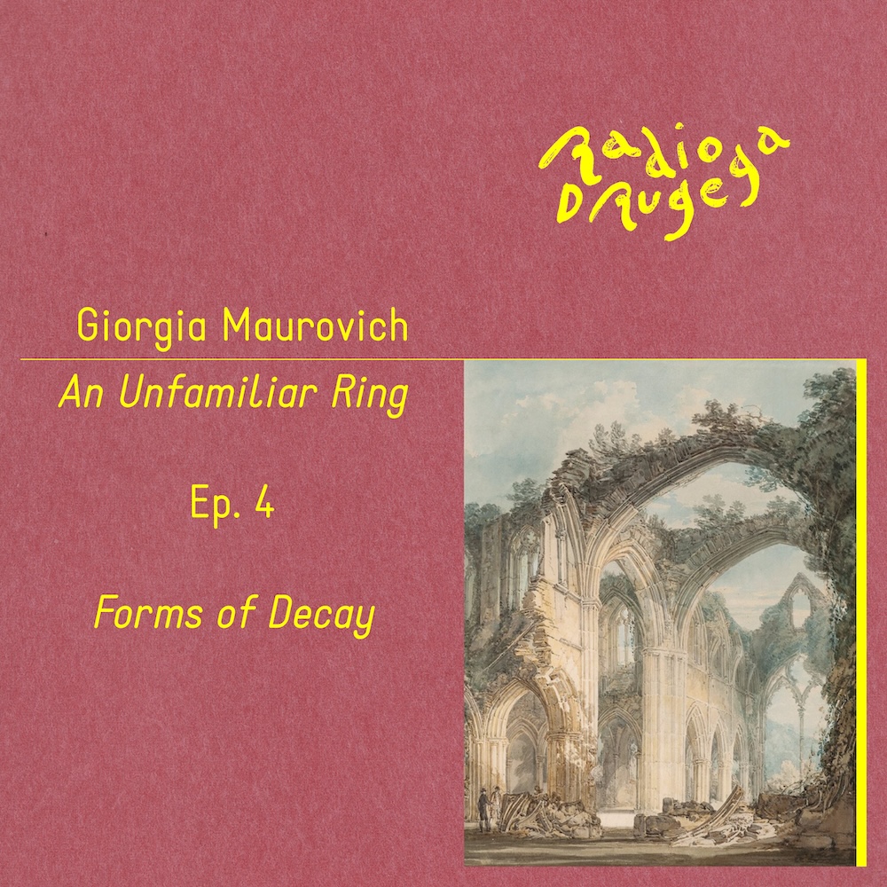 Written and recorded in physical and literary spaces stretching between Italy and Slovenia, Istria and Ireland, Poland, Austria, and Germany, this project explores the concept of abandonment in its various facets: ruins, displacement, exile, surrender, and the experience of deserted places, tailing the fractures and faults that witness the feeling of foreignness and the passing of time, to retrieve or unretrieve what’s lost. An audio essay that connects writers and researchers who have crossed the border area, An Unfamiliar Ring unravels in different landscapes between memory and languages, inducing the listener to face what’s left when willing to give up anything but the ghost.