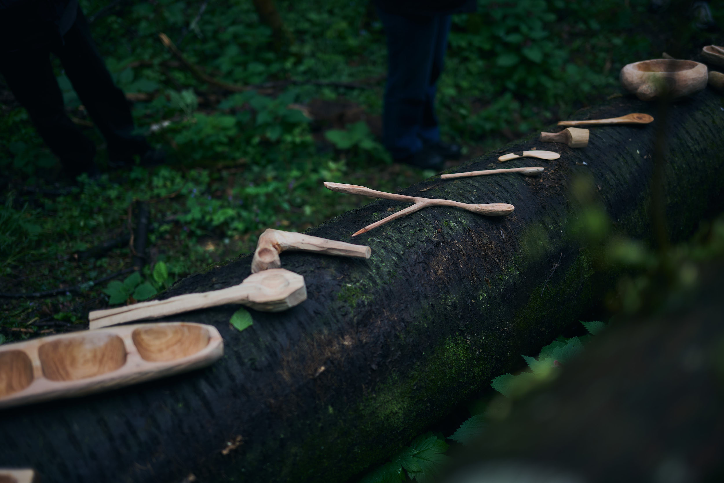 By using the tree to taste the recipes inspired by it, its afterlife is not only a rhetorical allusion, but also a material presence to be physically felt. And so we decided to carve different vessels – spoons, bowls and other utensils – in order to better incorporate what was once a fallen cloud.