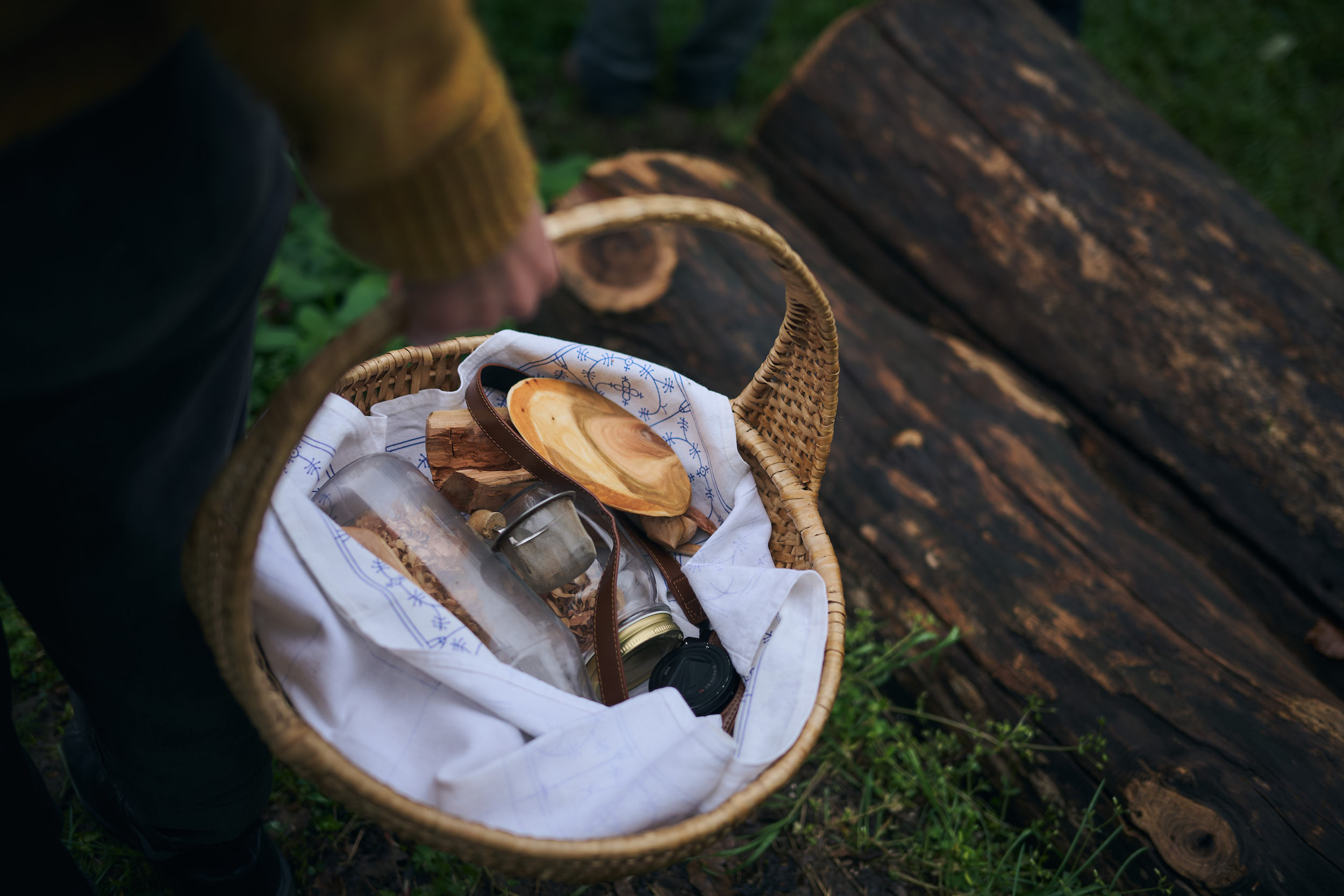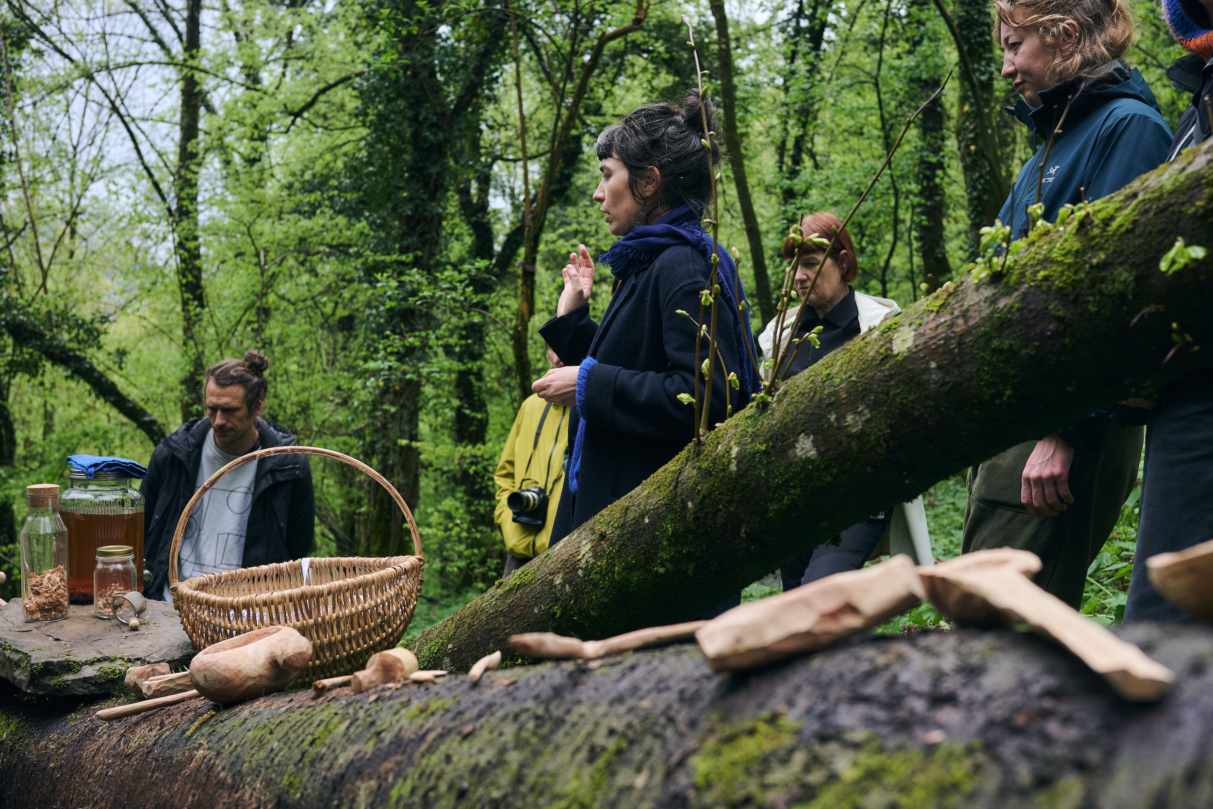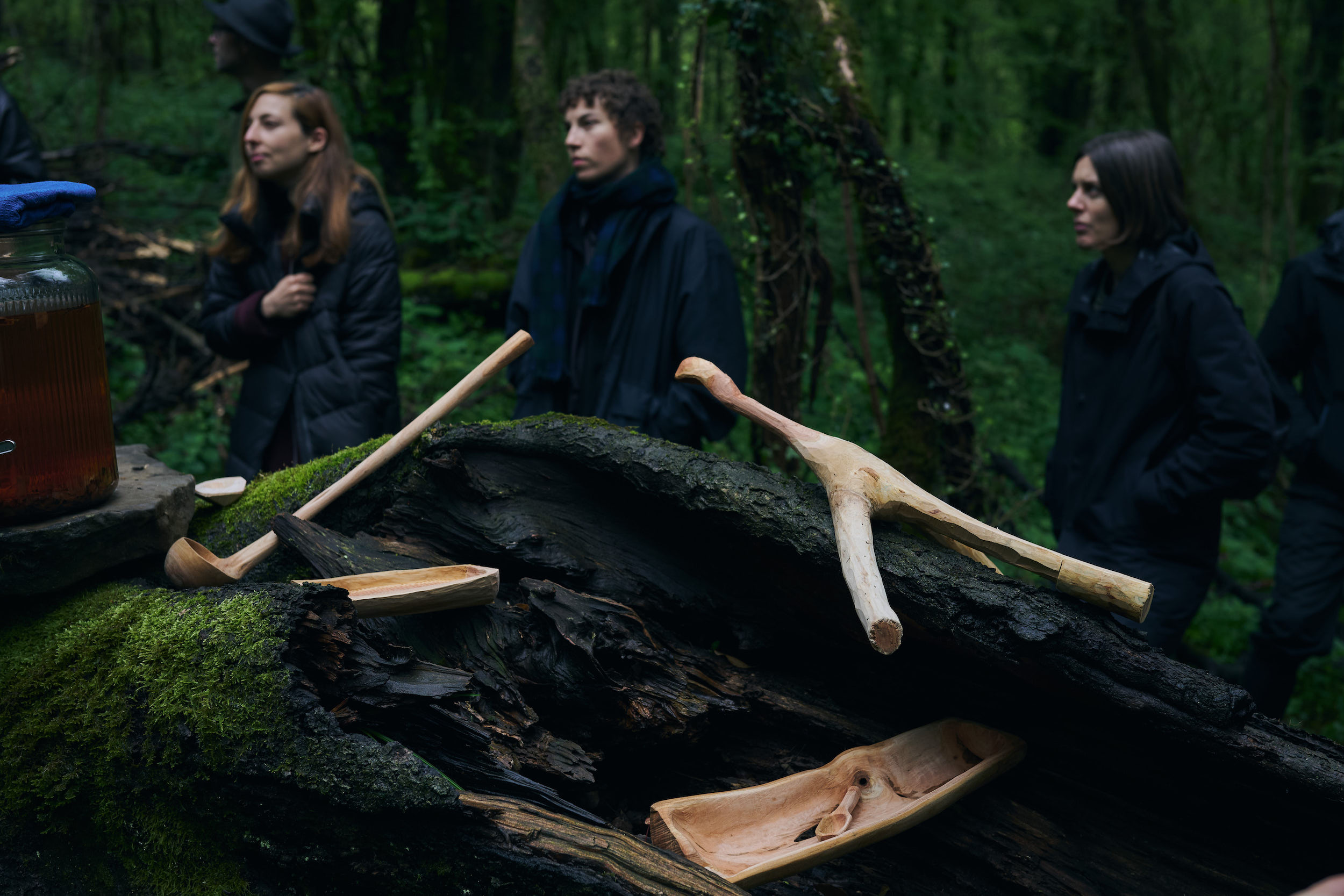By the end of it, the experience of working with this tree was complemented by yet another sense, as we got a taste of the wood itself. Phillip and Suzanne prepared a tea made from roasted cherry-wood chips, freshly gathered at the participant’s workbenches during the workshop. This beverage was served in the forest, by the fallen cherry, in vessels made from the wood collected there.